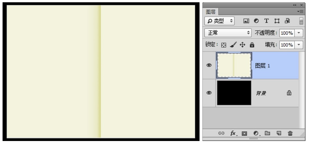 (2)新建图层1,填充浅黄色(# f3f3dd)。