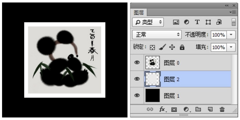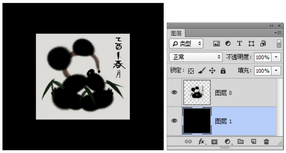(4)新建图层1,将该层拖动到图层0的下面,填充黑色,如图2.85所示。
