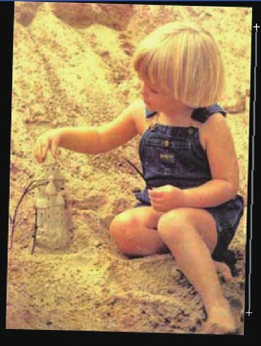 (1)打开图像“第2章素材\童年2-01.jpg”,如图2.78所示。这是一幅由杂志封面扫描得到的图像,角度有些倾斜。下面将其调整过来。