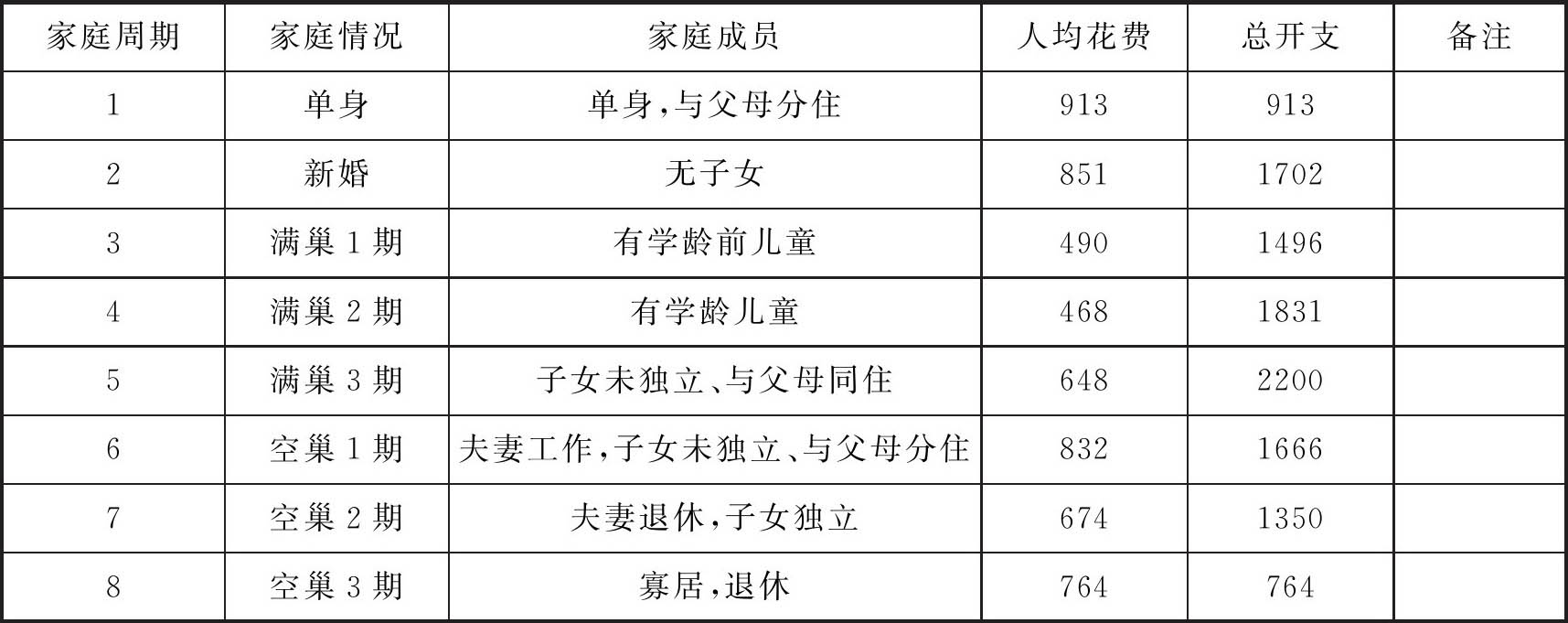 表3.2 新西兰家庭旅游参与花销(按家庭生命周期统计,单位:新西兰元)