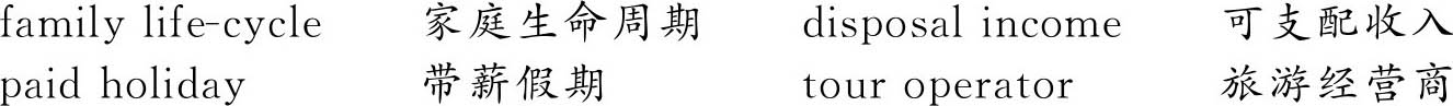 Even if an individual has the motivation to travel,he cannot do so at will.There are a lot of factors which can influence the possible decision and choice of his.These factors are connected with both the individual factors and the supply environment,which we refer to the determinants of demand.For example,a person must have a certain amount of disposable income so as to take part in tourism activity.This income and his choice of the type of tourism will,in turn,be affected by many factors such as job type,life-cycle stage,mobility,level of educational attainment and personality