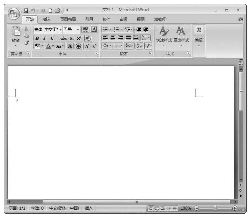 第2步 即可启动Word 2007,并创建一个名称为“文档1”的空白文档,如下图所示。