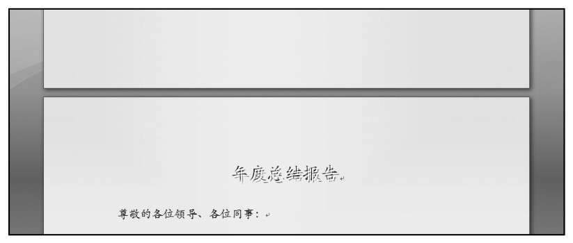 为公司年度总结报告文档设计封面,可以使制作的报告文档更加专业。设计封面的具体操作步骤如下。