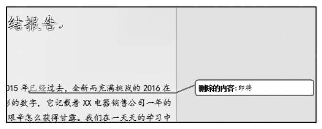 第2步 即可使文档处于修订状态,此时文档中所做的所有修改内容将被记录下来,如下图所示。