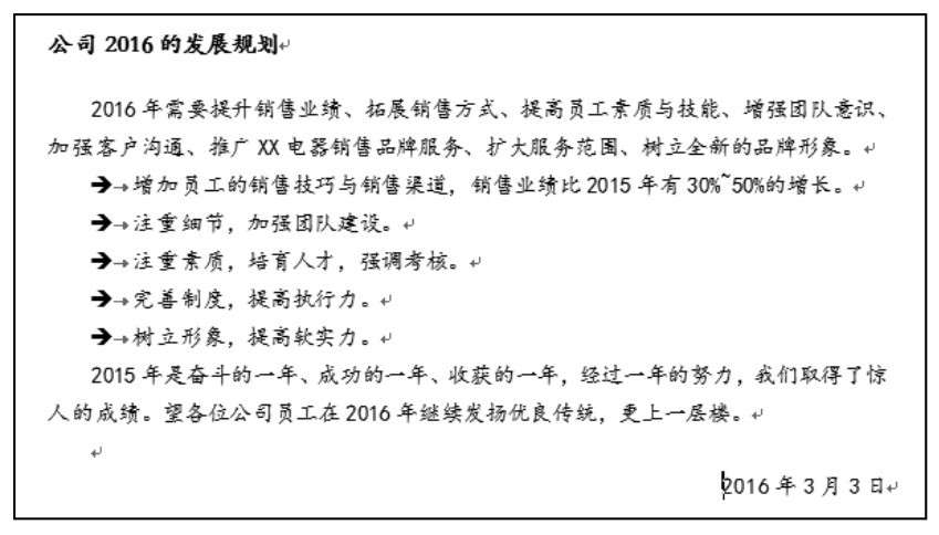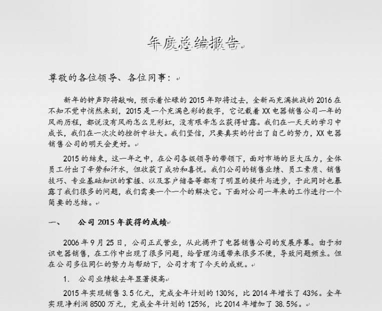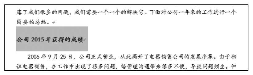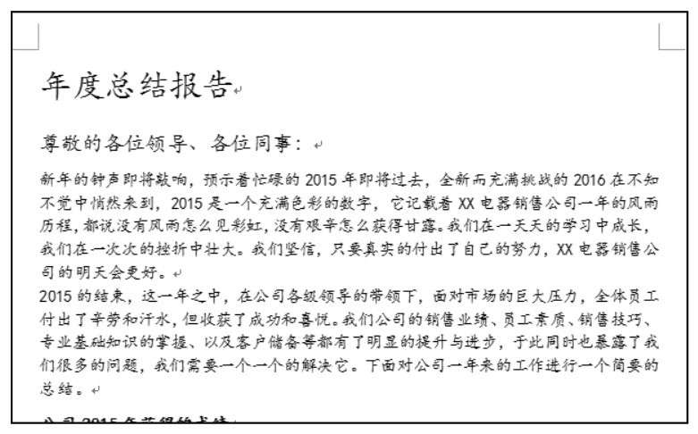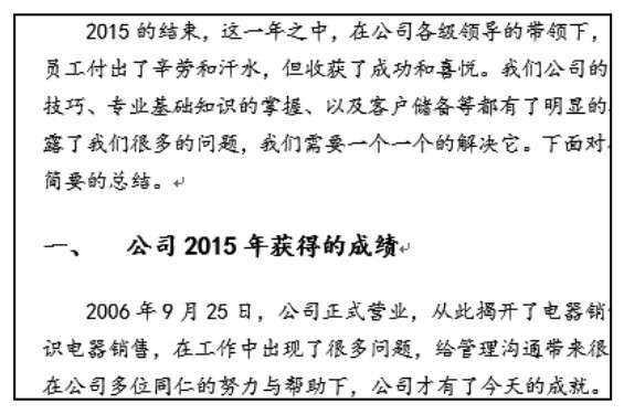 第6步 输入其他正文内容,可以打开随书光盘中的“素材\ch02\公司年度总结.docx”文件,将其内容粘贴至文档中,如下图所示。