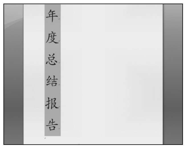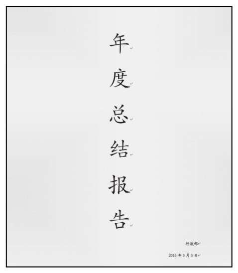 第3步 在封面中输入“年度总结报告”文本内容,并在每个字后面按【Enter】键换行。选中【年度总结报告】文本,设置【字体】为【华文楷体】, 【字号】为【60】,效果如下图所示。