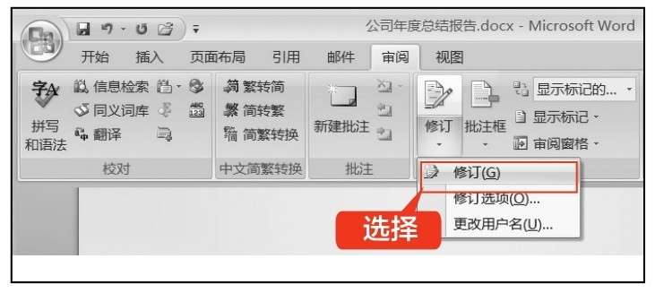 单击【审阅】选项卡下【修订】组中【修订】按钮