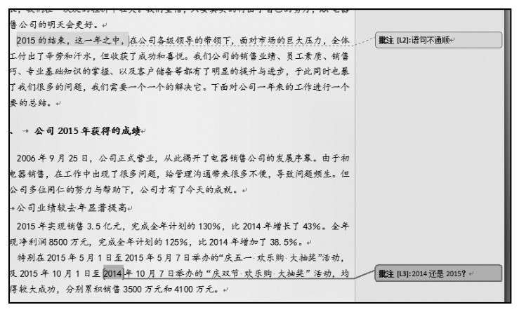 第3步 使用同样的方法,在文档中的其他位置添加批注内容,如下图所示。