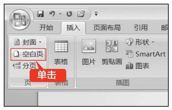 第1步 将鼠标光标放置在文档开始的位置,单击【插入】选项卡下【页面】组中的【空白页】按钮,如下图所示。