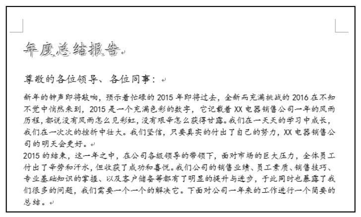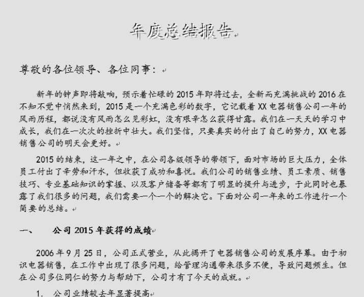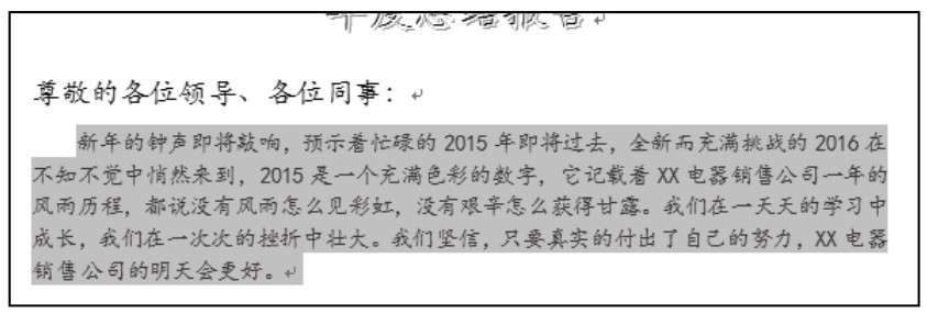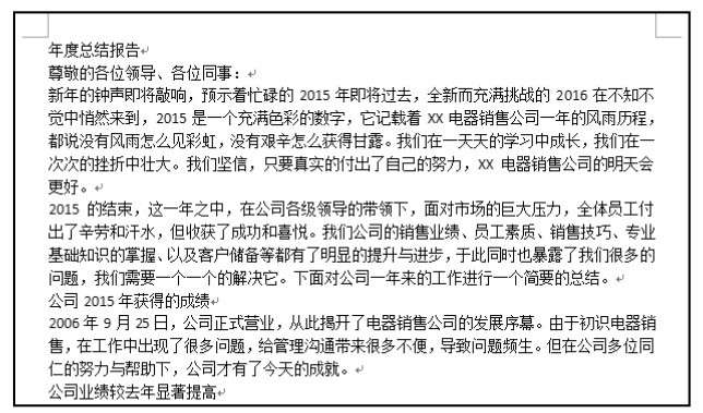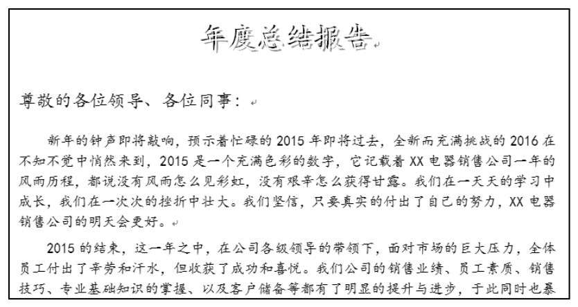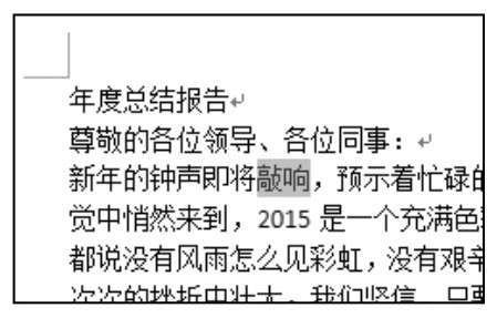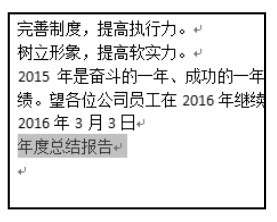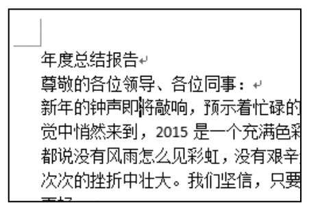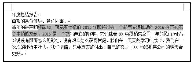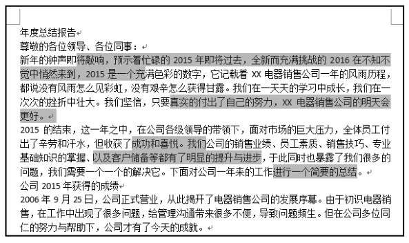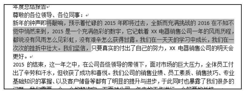输入年度总结报告内容之后,即可利用Word编辑文本,编辑文本包括选择文本、复制和剪切文本及删除文本等。