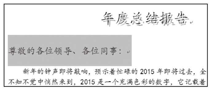 第2步 按住鼠标左键并拖曳,这时选中的文本会以阴影的形式显示,如下图所示。选择完成,释放鼠标左键,鼠标指针经过的文字就被选中了。单击文档的空白区域,即可取消文本的选择。