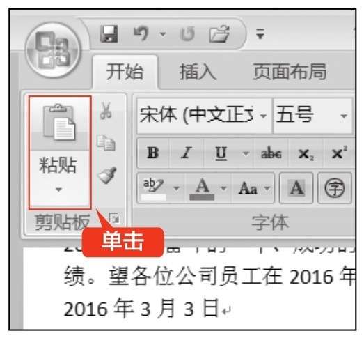 第2步 即可看到选择的文本已经被剪切掉,单击【开始】选项卡下【剪贴板】组中的【粘贴】按钮,如下图所示,即可完成剪切文字的操作。