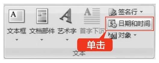 将鼠标光标放置在最后一行末尾,按【Enter】键执行换行操作,单击【插入】选项卡下【文本】组中的【日期和时间】按钮