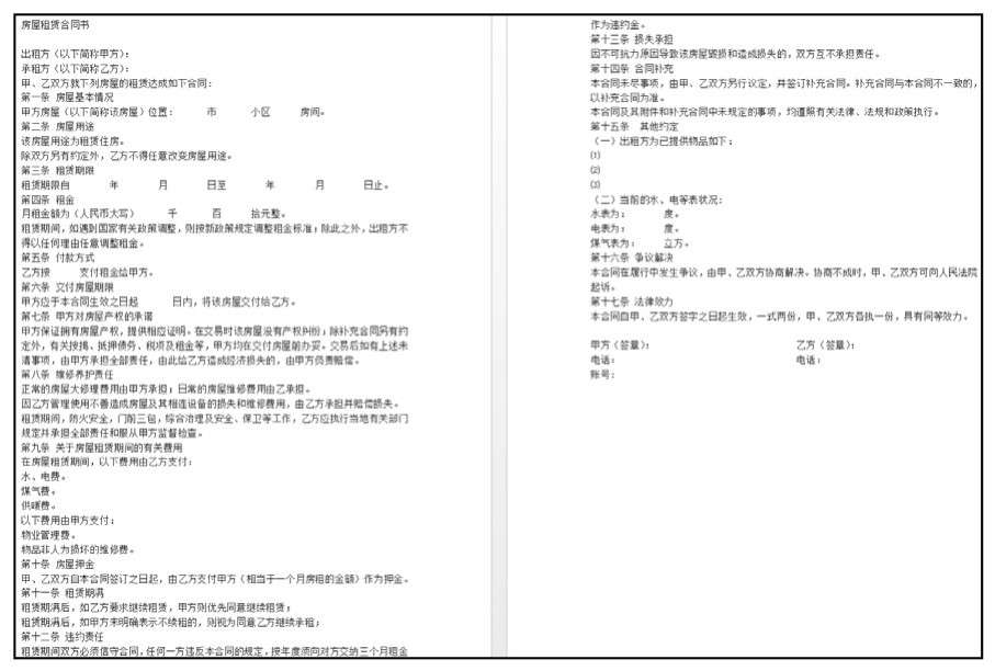 将制作完成的房屋租赁协议书发给其他人审阅,并根据批注修订文档,确保内容无误后,保存文档,效果如下图所示。