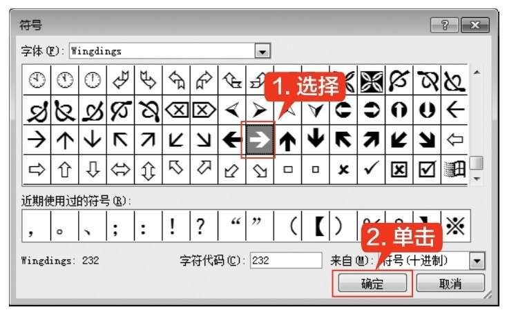 第3步 在弹出的【符号】对话框的列表框中选择一种符号样式,单击【确定】按钮,如下图所示。