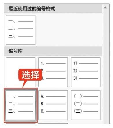 的下拉按钮,在弹出的下拉列表中选择一种编号样式,如下图所示。
