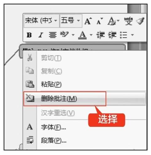 (3)在要删除的批注或添加了批注的文本上右击,在弹出的快捷菜单中选择【删除批注】选项,如下图所示。