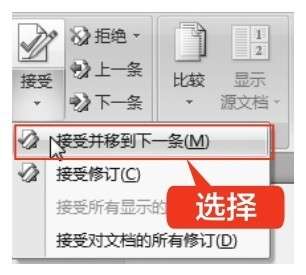 的下拉按钮,在弹出的下拉列表中选择【接受并移到下一条】选项,如下图所示。