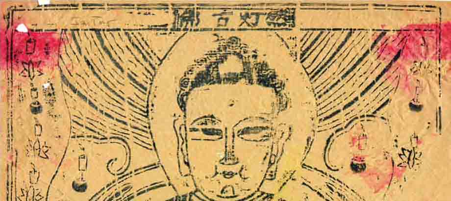 清代北京纸马《燃灯古佛》为独坐燃灯古佛的残缺纸马。