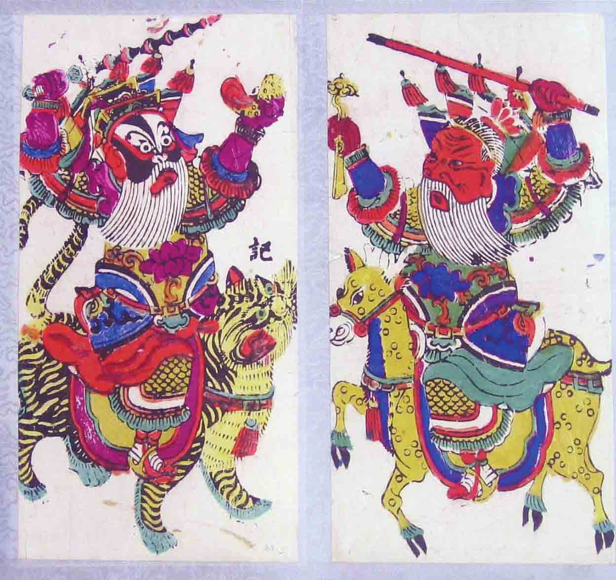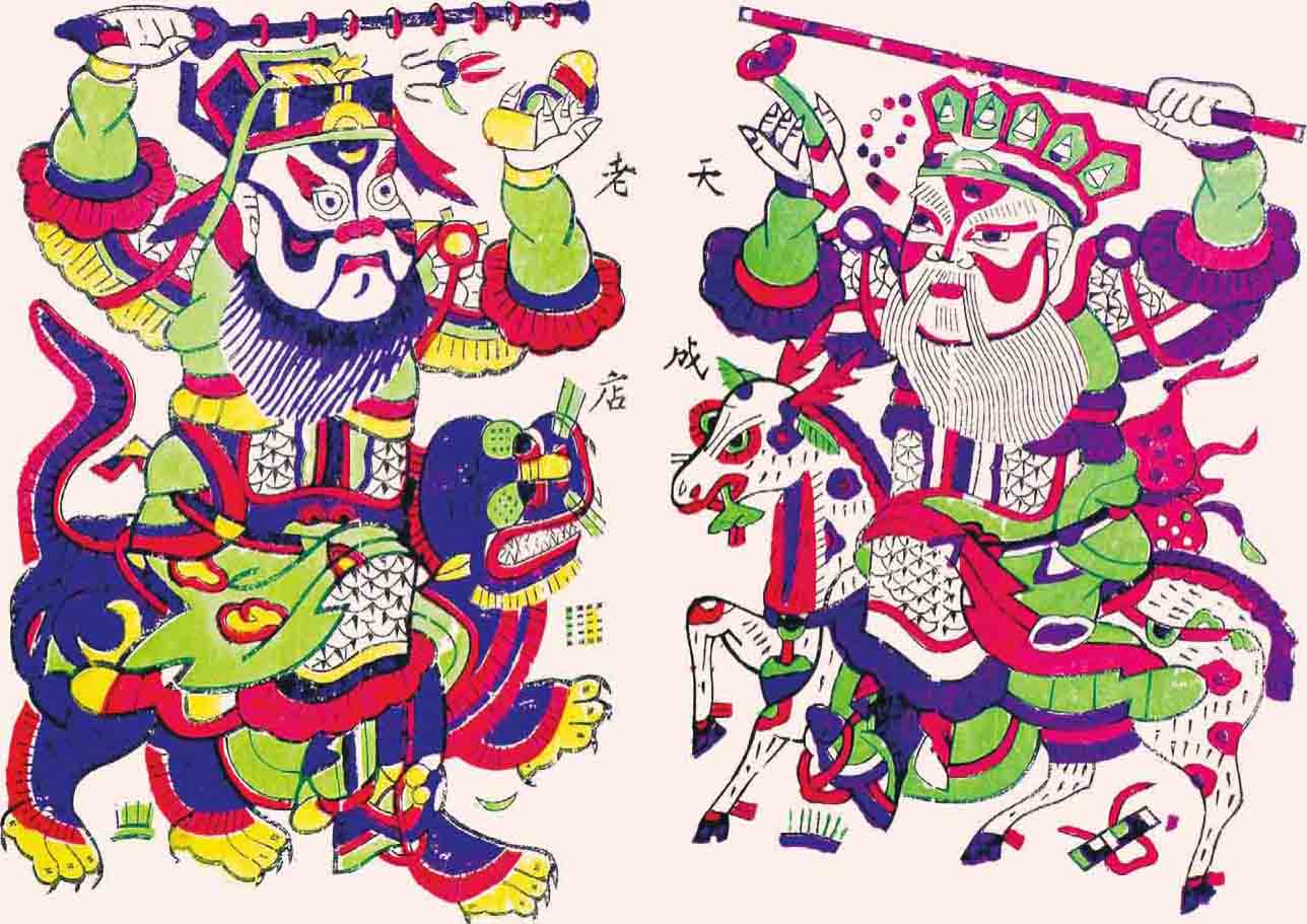 清代陕西凤翔年画《燃灯道人、赵公明》