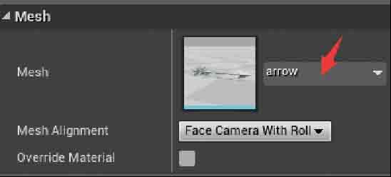 选中发射器中的Mesh Data模块,在左侧属性窗口中,Mesh属性栏选中导入的arrow模型文件,如图3-146所示。