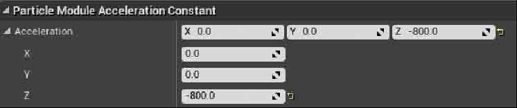 在属性窗口中把Acceleration栏Z轴数值设置为负数可以用来模拟重力。数值越大,重力影响越大。案例中Z轴设置的数值为-800,如图3-156所示。正常情况下重力的标准数值是-980。