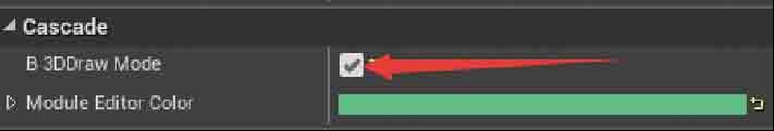 如图3-154所示,找到属性窗口下面的Cascade属性栏,勾选B 3D Draw Mode选项,在粒子预览窗口中可以看见发射器外框形态,现在的发射器是一个立方体。