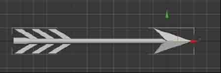 如图3-130所示为制作完成的箭模型,在Front视图(按快捷键F)中将模型箭头的部分使用旋转工具指向X轴(箭头处红色为X轴,绿色为Y轴),使用移动工具(快捷键W)移动箭到3ds Max世界坐标轴的中心,X、Y、Z坐标数值归零。制作模型的时候注意,如果模型是类似箭这样首尾造型明确的,需要把模型头部朝向X轴。如果是球体这种首尾造型不明确的,直接将模型移动到3ds Max的世界坐标轴中心(坐标0、0、0)即可。