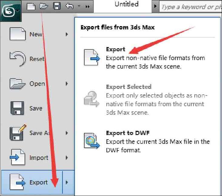 在三维软件3ds Max中建立一支箭的模型(制作过程略)。3ds Max 9以上版本才能直接导出FBX文件,Max 9版本需要安装一个FBX导出插件,推荐使用Max 2010以上版本。