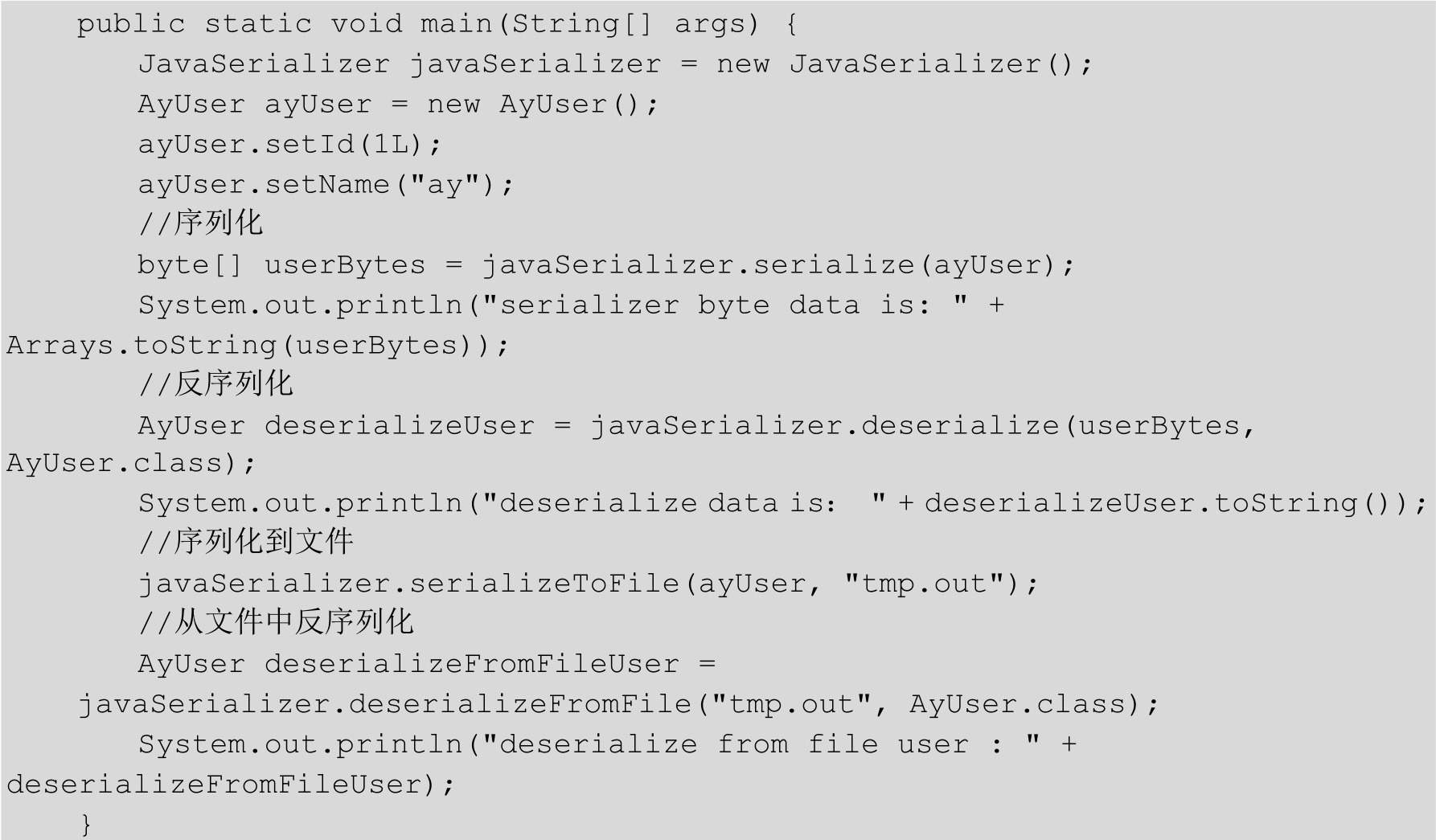 步骤04 开发代码,将AyUser对象进行序列化和反序列化:
