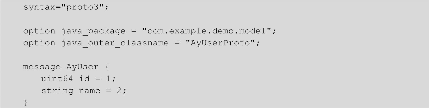 步骤02 编写AyUser.proto文件,具体代码如下所示: