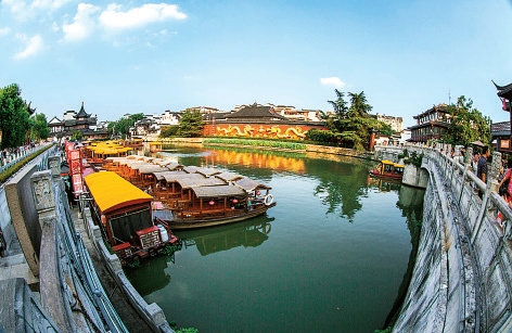秦淮河,长江下游的一条重要支流,横贯于南京腹地,被南京人称为“母亲河”。其河水在南京城壕分为内外二流。流经城壕的绕城入江,为护城河,称外秦淮。流入城内的,从东水关入城,西水关出城,称内秦淮。内秦淮全长五公里,号称“十里秦淮”,也是秦淮风光带精华之所在。