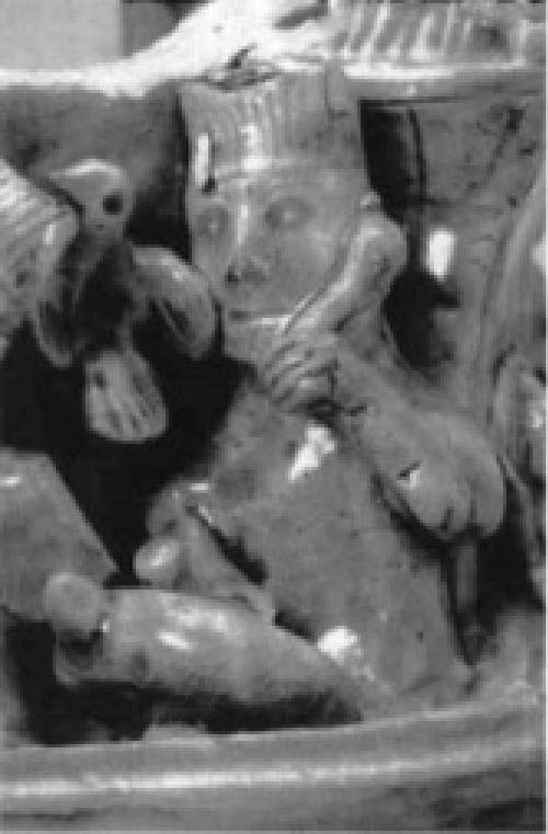上述各类乐器均在堆塑罐上出现,乐器演奏者皆为胡人,乐器无固定组合演奏形式,但鼓、相、吹管乐器出现频率最高。这些乐器中的一部分至今仍作为我国的“民族乐器”活跃在人们的日常生活和舞台上,人们可能很少会想到,这些乐器原本并不是我们的“民族乐器”,而是外来的,是佛教馈赠的厚礼。堆塑罐上有部分手持乐器的胡人,也有胡人摆出吟唱姿态,这极有可能就是在吟唱佛教音乐。从青瓷堆塑罐上的乐器中我们可以看到,浙江在三国西晋时期已出现了那么多的乐器种类,说明这一时期的音乐活动十分活跃。