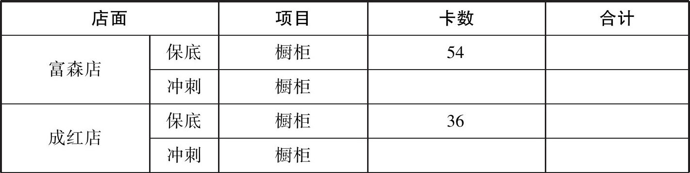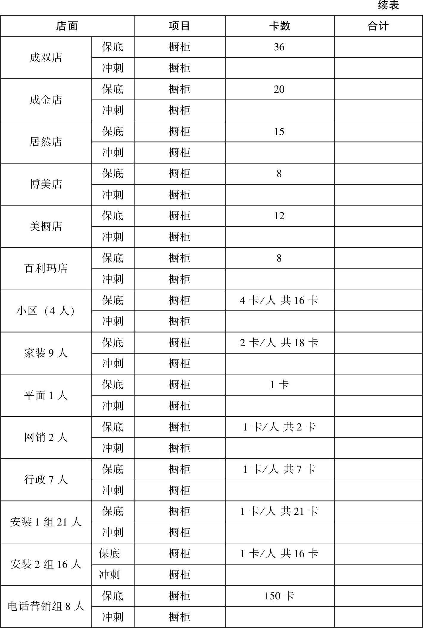 负激励时间段,每个阶段、每个店售卡任务如下: