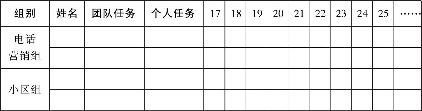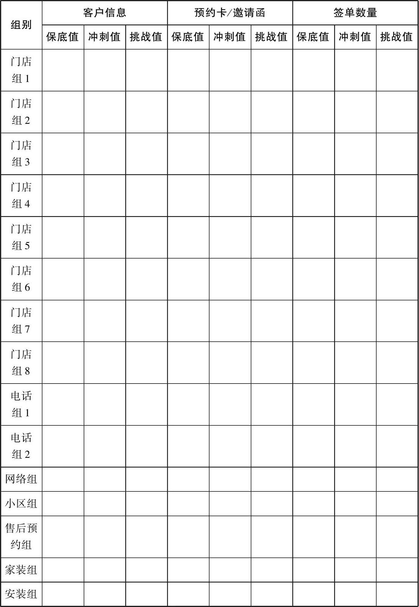 根据研究分析市场,制订预约策略,建设针对性的执行团队。按实际情况可分为:门店组、电话组、小区组、网络组、安装组、家装组、行政组等。