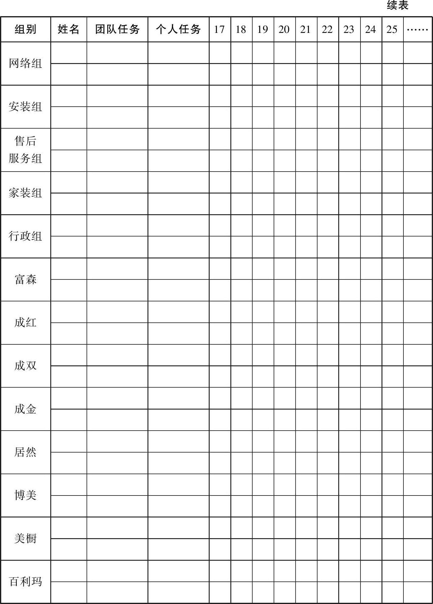 阶段二:10月25日—10月31日,富森任务27张,成红任务18张,成双任务18张,成金任务10张,居然任务8张,博美任务4张,美橱任务6张,百利玛任务4张;小区8张;家装9张;平面1张;网销1张;行政4张;安装1组11张;安装2组8张;电话营销组70张。