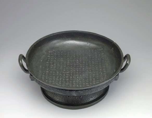 楚庄王在当时被认为是大逆不道,问鼎意味着有野心。但这个故事说明了在当时青铜器,特别是礼器祭器的铸制是非常神圣的,它只能运用在极高层的场合。但反过来想想,到了春秋时候,一个诸侯国的国君居然敢问周鼎,证明了王室的衰落,它又意味着青铜器使用的范围开始扩大,不仅限于天子。可以说,这是金文发展最为繁盛的时期。金文的流派众多,无论在艺术性,还是在制作技术上来说,都有很大程度的发展,给今天留下了非常珍贵的上古文明模式。西周初期如《大盂鼎》的艺术成就,已经是金文时代的最高峰。而基于各种不同目的如咒术、祭鬼神、占卜或是崇尚礼节,注重理性的西周人,在不同的金文作品中也反映成各种不同的文字风格。西周时的青铜器传世很多,如文字长达497字的《毛公鼎》。但到了东周前期,有年代的青铜器就非常之少,致使在3000件传世作品中,东周前期150年间的青铜器究竟是哪一些,我们几乎很难直接加以判断。比如容庚《商周彝器通考》将东周66件作品加以编年,春秋中期以前的一件也没有。这种年代不确定的现象,也为我们了解整个金文发展史带来很大不便。因为要从中寻找出风格嬗变痕迹显得十分困难,流派的划分更是难以着手。只有到了东周后期列国的时候,流派才又走向了一种稳定。国与国之间的关系,在大国、小国的兼并过程中,从原来战乱征伐、动荡不安的局面渐渐形成比较稳定的格局。加上当时诸侯开始有独立倾向,在青铜器的制作上也开始出现几种有价值的现象:一是列国诸侯和卿大夫自制铜器,这必然导致青铜器上的铭文在形式上与内容上的多样化。二是由于地域的不同,使铭文书体有很大的差异,这是基于当时各国相对封闭、划地自守的政治格局而形成的。后来,由于各国兴衰胜败,国域之间的差别渐渐缩小,但从整个大的区域看,还是带有明显的地区性痕迹。三是不仅为了纪念或正式场合制作青铜器,也开始为日常需要制作青铜器。比如当时的青铜器即分为礼器如宗器、旅器、媵器;乐器如祭祀、宴飨鼎、彝鬲爵;盛器、饮器、酒器之类以及钟铎埙磬之属,还有度量衡、钱币、兵戈、符玺、服御之器如镜、钩等等,分类既广,遍涉各种生活所需,自然在金文种类上也有相当大的变化跨度。目下研究金文的,大致可以分为三个途径:一是以编年分,但考虑到许多金文没有年号,无法断定年代,有很大的困难;二是以器类分,这对青铜器研究有意义,但对我们从事的书法史研究意义不大,因为我们不是主要研究器形器制而是研究铭文;三是以地域分,立足于当时各区域相对封闭稳定的事实,这样的区分有意义,尤其在东周时期列国诸侯划疆而治时,更有应用的价值。一般我们把金文的风格分为四大类: