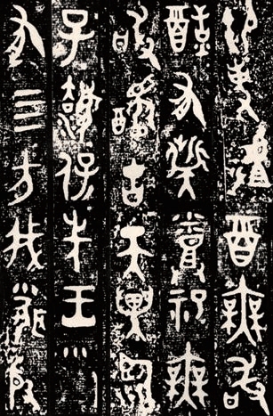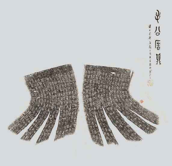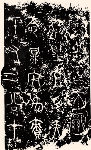 尊》与甲骨文卜辞并无二样,也有锋芒毕露的刀刻痕迹。估计这应该是一种承传的模仿。直到西周金文,那种两头粗中间细的线条,如《盂鼎》等也还可以看作是甲骨文体式影响的结果,只不过它比较金文化了,人们不太习惯于仅以甲骨文视之而已。