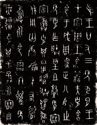 青铜器的制作有点类似翻石膏,只是牵涉到冶炼这一复杂的技术,需六七道工序,要求很高。这里我们可以看到,每一道工序都可以成为风格产生的因素。如果基于一个标准化的模子,每一道工序的手续过程也都可以成为风格走样的因素。两种因素都可以存在。甲骨文的刻是一次完成的,而金文有多道工序,所以,它更接近工艺美术的制作。甲骨文的刻是手段简单的一个标志,而青铜器翻铸的过程,意味着青铜器在表现手段上也可能更丰富、更复杂。从艺术风格上来看,它所形成风格的弹性更大。有这么多的环节,每一个环节都可以做文章,都可以构成不同的风格趋向。当然必须强调的是这个过程还是被动的。一个作款识刻画的“艺术家”(当然,在当时还不是艺术家),从写完以后一直到作品的完成为止,他没有办法控制整个作品制作的全过程,因为工序太复杂,使他无法去干预每一个环节。现代人写字,从拿起毛笔到作品最后完成(装裱除外),作者可以控制整个作品的全过程。毛笔在纸上怎么运行,怎么走,作者自己完全可以决定。青铜器制作的每一道工序都有专职的工匠,书款识实际上相当于一个建筑师提出一张蓝图,不可能由一个人独立完成一座大厦的建造。我们常常可以看到当时钟鼎彝器制作有这样一种分别,身份高的贵族所用的青铜器制作精美,而身份低的则制作粗糙(虽然远古时期的粗糙,今天看来却很有意思)。这种远古时代的差距表明,其间风格差异是一个不自由的、无法选择的、被动的差距,一切只能根据各类工匠的技艺而定,书者无法主动控制整个过程。正是这样一种差异导致了金文风格史的产生。而更重要的是,它与我们现在的书法史风格差异的含义也不一样。这一过程形态,在整个金文发展期间是主流形态,风格的演变具有明显的被动成分,这是它的基调,当然其中也有某一局部可以是主动的。随着时代文明进程的加快,这种被动发展的间隔时间越来越短,由被动转向主动的频率越来越快。原来可能是上千年一个单元,后来是几百年一个单元,再到后来是几十年一个单元,现代是瞬息万变的单元。以此类推,由于上古时代整个发展进程的缓慢,最早的西周金文必然是非常迟钝、粗糙、质朴、简单的,当然也可能是非常大气的。按我们现在的艺术标准说大气,而在当时却是一个粗糙、简单的标准。今天艺术家的判断标准和古人判断标准正好相反,古代人最粗糙,最没有价值的东西,我们今天却可能认为是最好的。但这不能代替我们对历史的理性把握。