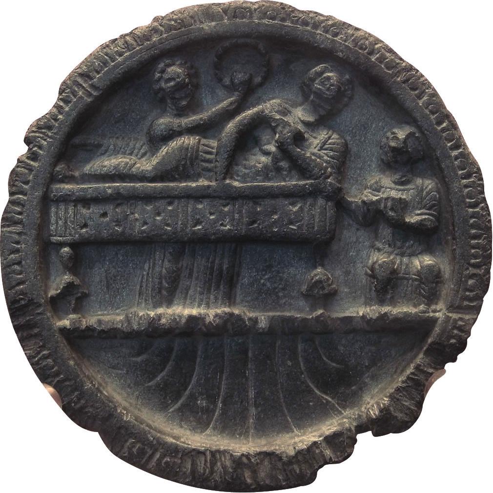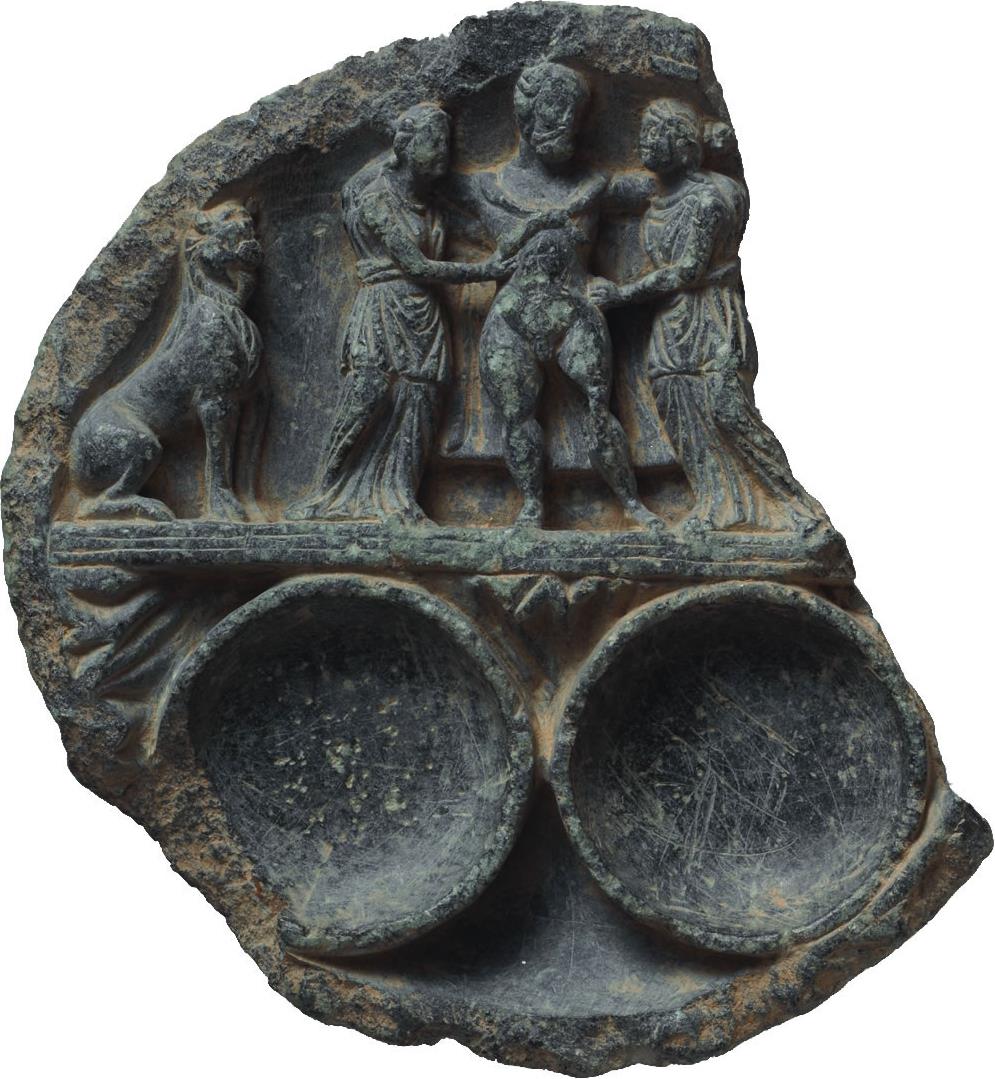 但希腊文化深刻影响了犍陀罗的早期美术,最具代表性的艺术品是一些圆形石制作品,被称为“装饰盘”(toilet tray)。伴随着装饰盘的消失,犍陀罗美术进入了贵霜佛教美术的兴盛时期。