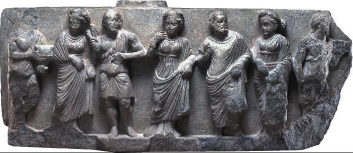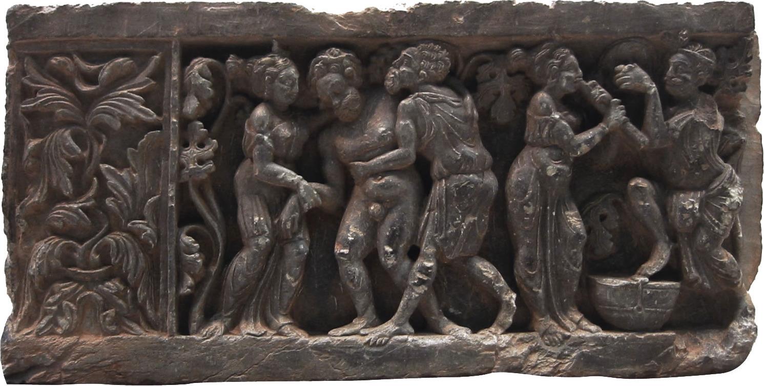 图1-26 犍陀罗浮雕,载歌载舞的酒神节,1世纪,大都会博物馆