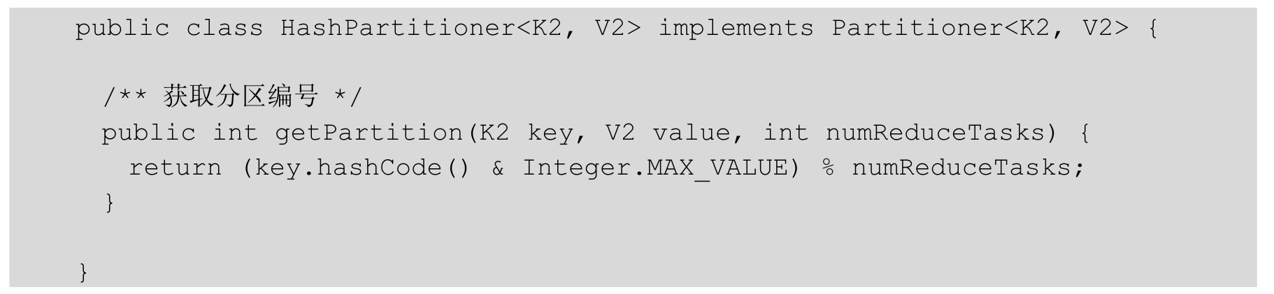 MapReduce提供的默认分区类为HashPartitioner,该类的核心代码如下: