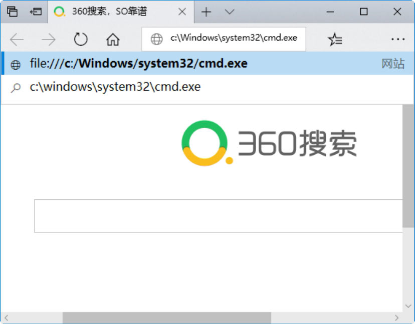 在Microsoft Edge浏览器的地址栏中输入c:\Windows\system32\cmd.exe,按Enter键即可进入DOS窗口。