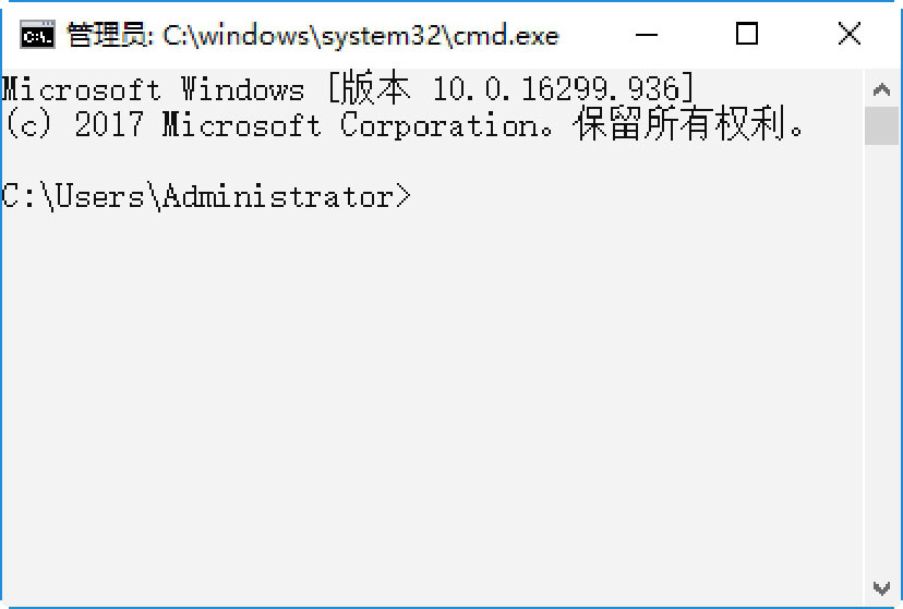 Step 02 弹出“管理员:命令提示符”窗口,在其中可以执行相关DOS命令,如下图所示。