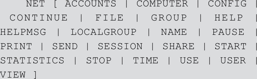使用net命令可以查询网络状态、共享资源以及计算机所开启的服务等,该命令的语法格式信息如下。