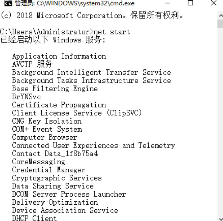 Step 02 按Enter键,则在打开的“命令提示符”窗口中可以显示计算机所启动的Windows服务,如下图所示。