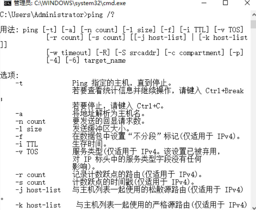 (2)-h MaximumHops:指定搜索到目标地址的最大跳跃数,默认为30个跳跃点。