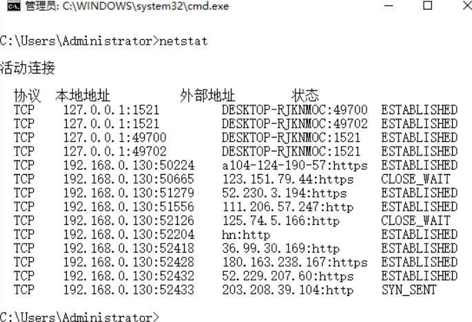netstat命令主要用来显示网络连接的信息,包括显示活动的TCP连接、路由器和网络接口信息,是一个监控TCP/IP网络非常有用的工具,可以让用户得知系统中目前都有哪些网络连接正常。