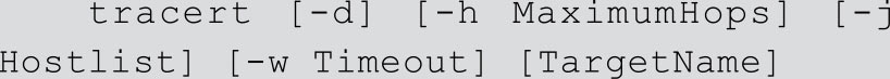 使用tracert命令可以查看网络中路由节点信息,最常见的使用方法是在tracert命令后追加一个参数,表示检测和查看连接当前主机经历了哪些路由节点,适用于大型网络的测试,该命令的语法格式如下。