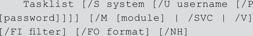 Tasklist命令用来显示运行在本地或远程计算机上的所有进程,带有多个执行参数。Tasklist命令的语法格式如下。